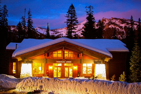 Stay in a modern yet rustic lodge with vaulted wood-beam ceilings, grand stone fireplaces, panoramic windows overlooking a snow-filled forest, and jagged mountain peaks all around. Wuksachi Lodge in Sequoia National Park has adventure trails leaving right from its lobby.