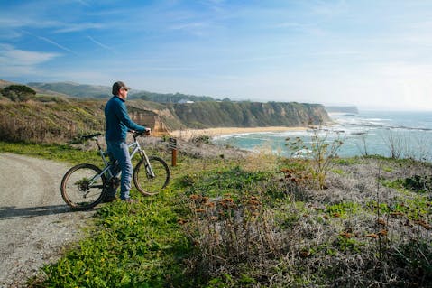 For an easy bike ride with enormous coastal views, head a few miles south of Half Moon Bay. The Cowell-Purisima Trail stretches for 3 sea-breezy miles along high coastal bluffs.