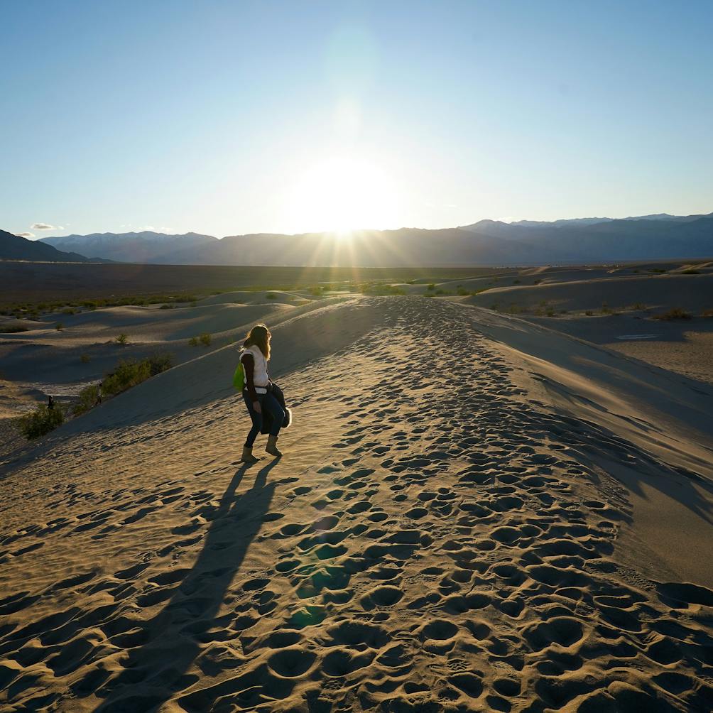 Of all the places to catch a sunset in Death Valley, we still think there’s none better than the Mesquite Flat Sand Dunes, inspiring many things, including log rolls, cartwheels, and sundown selfies.