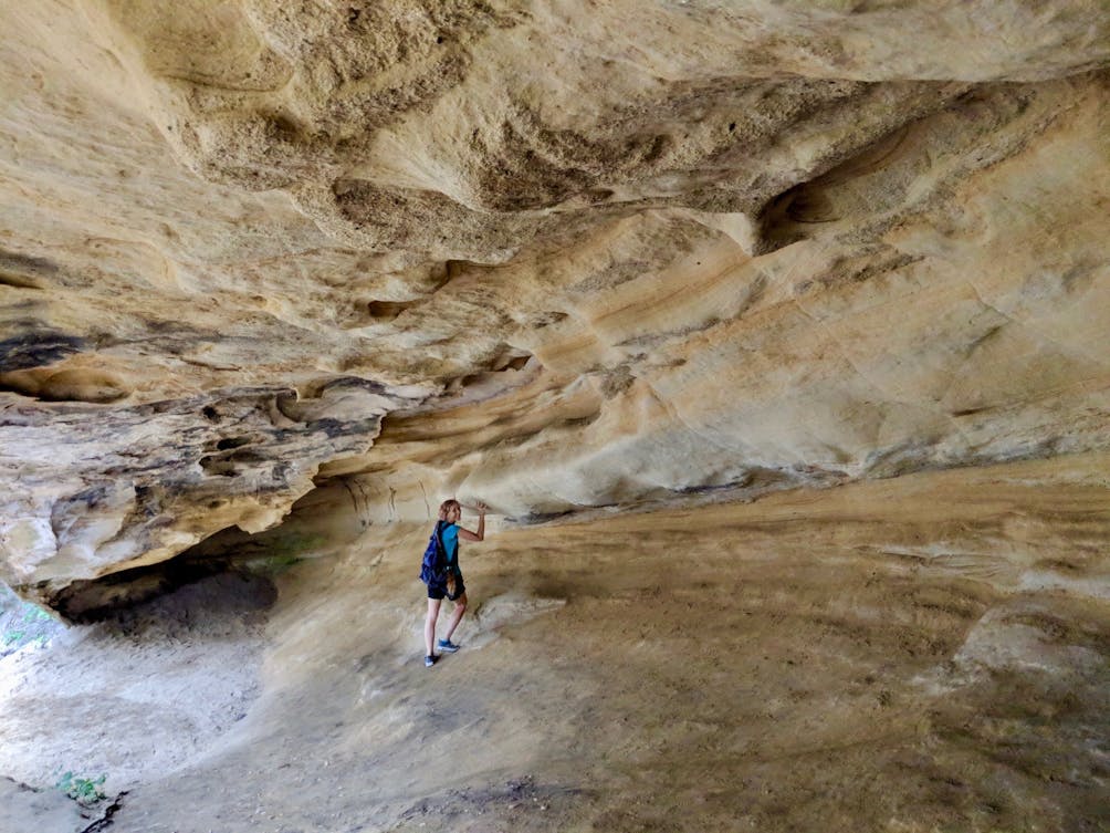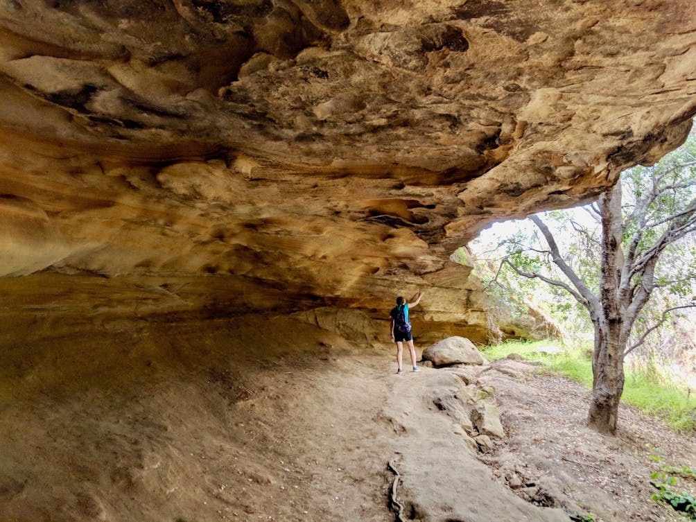 It’s just a 1.5-mile (round-trip) hike on an out-and-back trail to reach Vanalden Cave in the Santa Monica Mountains, an impressively large sandstone chamber.
