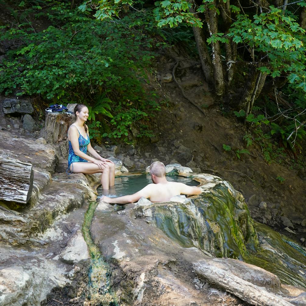 People love a good hot spring. And Umpqua Hot Springs in Southern Oregon is a marquee attraction. You're perched on a mineral deposit above the flowing beauty of the North Umpqua River.