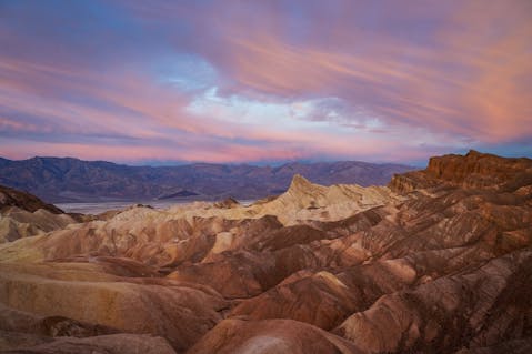 March in Death Valley is (dare we say) full of life! There’s a dark sky festival to kick off the month; blooms, though perhaps not super this year, will nevertheless be popping; and the temporary Manly Lake at Badwater Basin—the lowest point in North America—is still going strong (for now). Here’s your guide to a sunrise, sunset, and starry night hiking trifecta for winter and early spring in Death Valley National Park.
