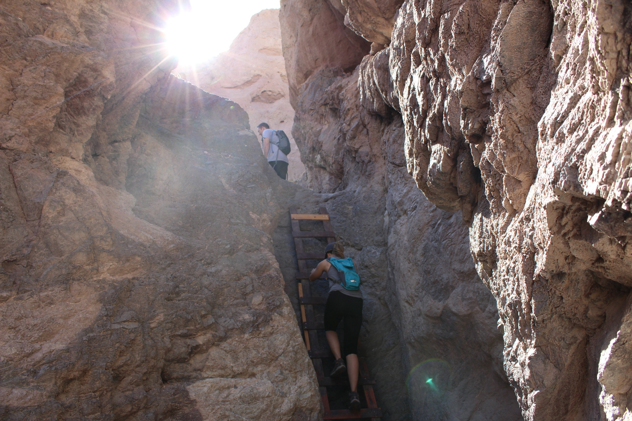 Just when you think you can’t go any farther in Painted Canyon, you remember why this route is called the Ladder Canyon Trail. Whew! There it is: a perfectly placed ladder that gets you up and over the would-be dead-end and into the next thrilling phase of your canyon hike. Ladde