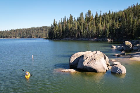Green Valley Lake, nestled at 7,000 feet in the San Bernardino Mountains right between Big Bear Lake and Lake Arrowhead, has all the watery charm of those popular bodies of water, just on a smaller scale, and decidedly without crowds—or motorized boats. It's also got camping, including first-come, first-served options.