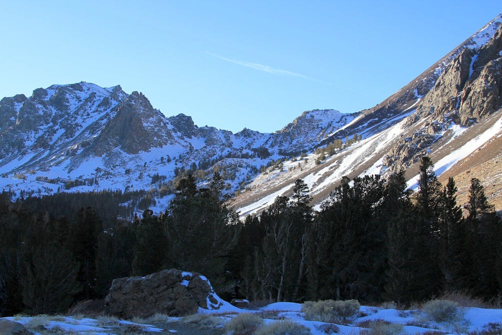 Snowshoeing at Virginia Lakes, a cluster of alpine lakes nestled in the rugged eastern Sierra northwest of Mono Lake, is an unforgettable journey—and you’re likely to see just a handful of other trekkers all day. This pristine backcountry within Humboldt-Toiyabe National Forest i