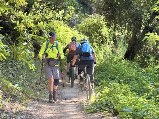 View![Two hikers at Bear Creek Redwoods Regional Preserve on a new trail.]()