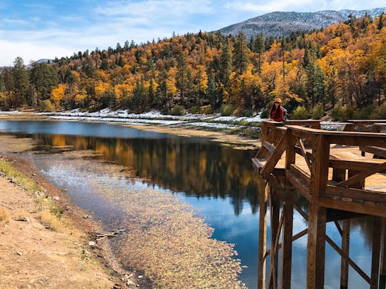 In summer Jenks Lake in the San Bernardino National Forest is bustling with families enjoying lakeside activities. But in the fall and winter this place is calm and peaceful. A 3.1-mile loop trail explores the lake.