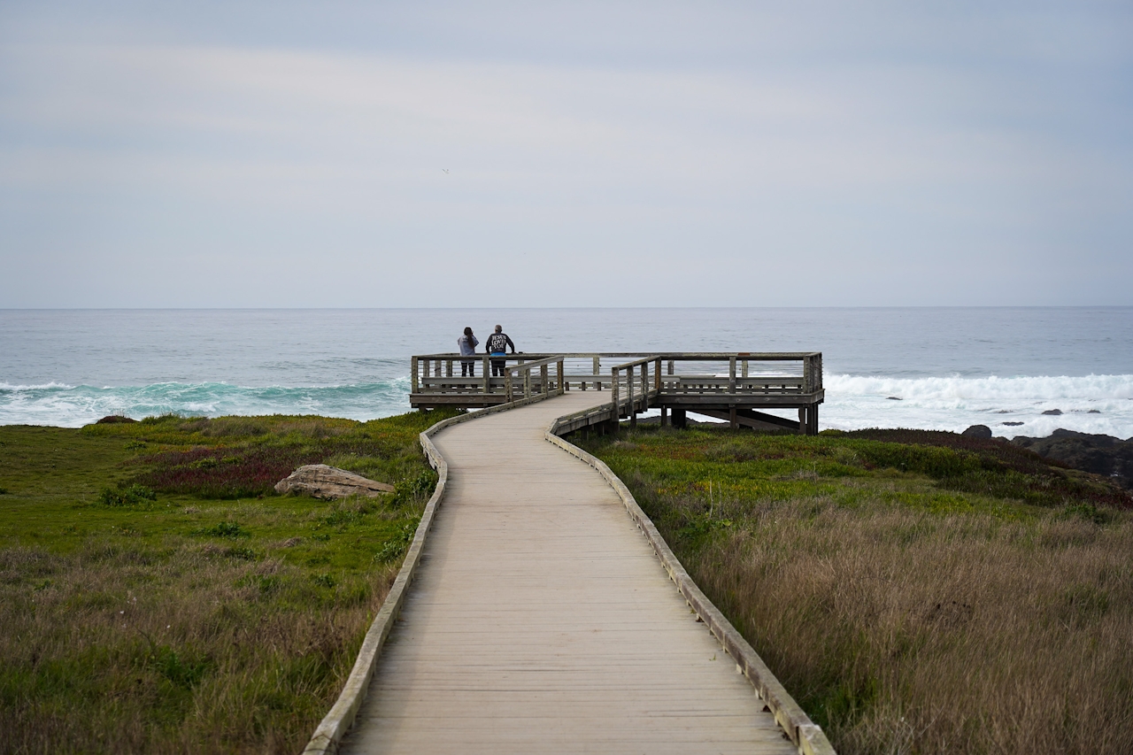 Start at the main parking area, where you’ll find picnic tables perched above a striking (and sensitive) landscape of dunes, bluffs, and beach. From there, head west to the oceanfront Laguna Point Trail, a 0.6-mile boardwalk loop with sweeping views from Fort Bragg to the Lost Coast. Five interpretive platforms offer prime vantage points, and a stairway to a beach cove provides access to tide pools.