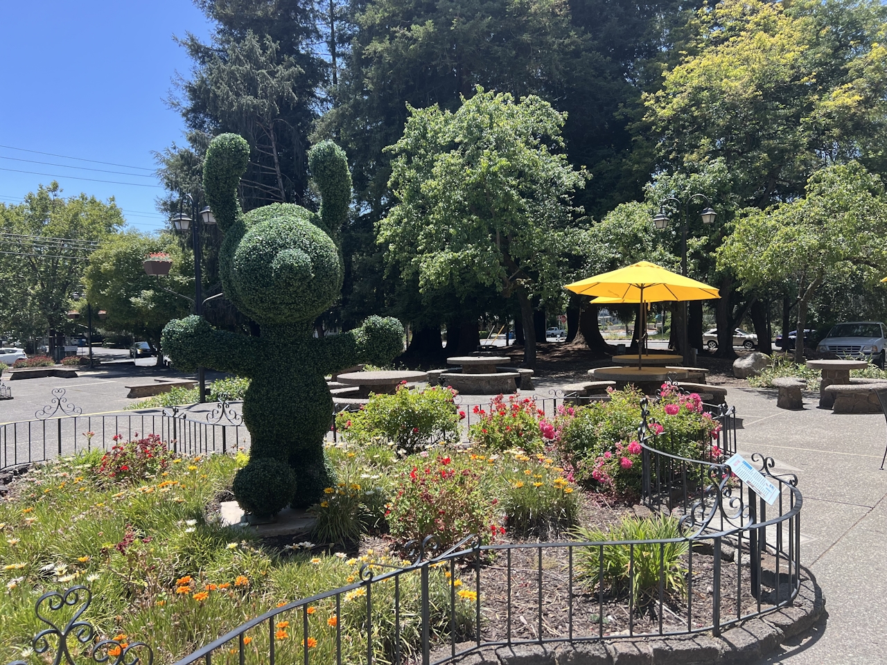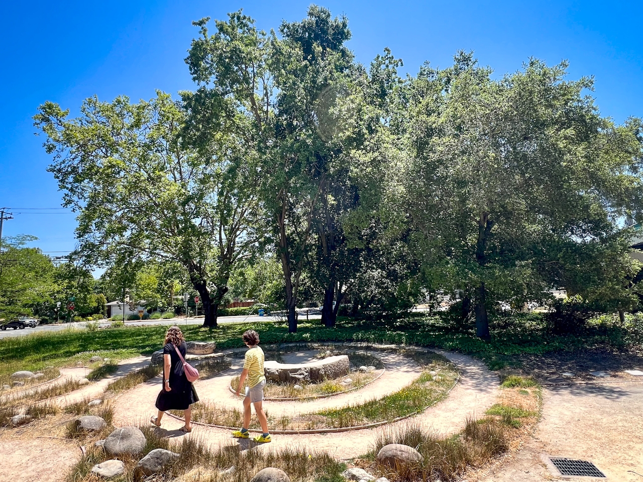Or venture outside and ruminate on the meaning of life (or Christmas?) by walking a labyrinth shaped like Snoopy’s head and checking out some a giant redwood tree in a garden area featuring Peanuts figures like Linus.