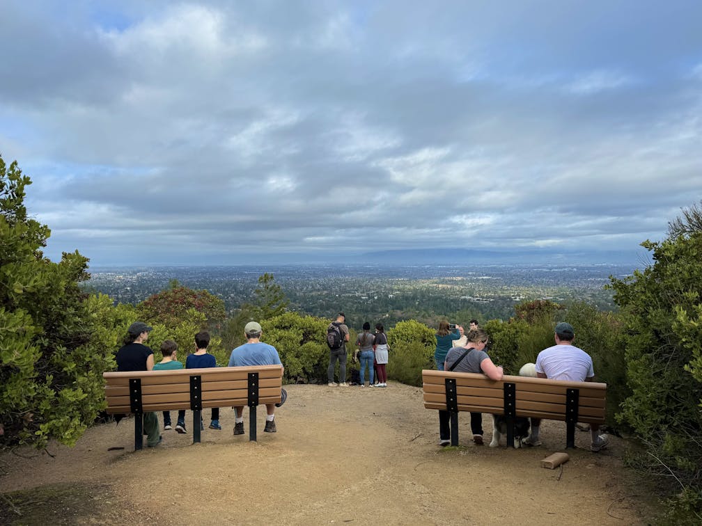 At the intersection with Lookout Point Trail, keep left onto the spur trail as it rises to an open vista point. Enjoy views of Silicon Valley, from the urban tech campuses to the Diablo Mountain Range in the distance. Then head back down the spur trail and turn left to follow the Redwood Trail as it switchbacks down the hillside.
