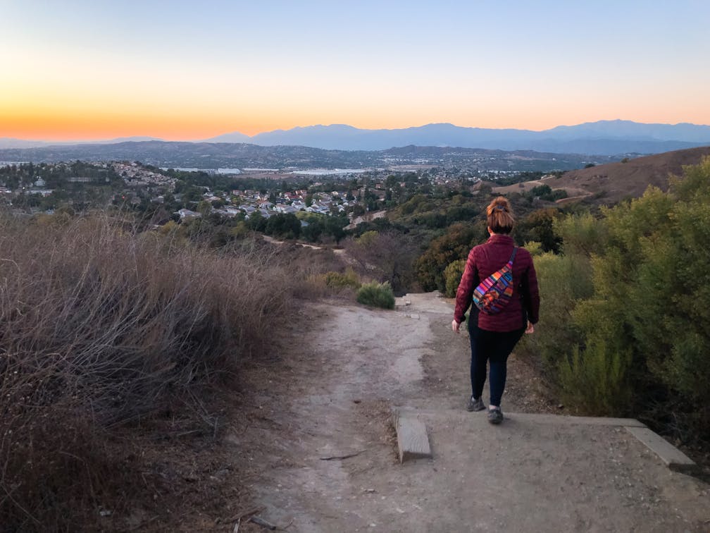 Overall the trail gains 337 feet in elevation but with frequent breaks to enjoy the setting sun, it doesn’t feel all that bad. Eventually the trail will hit a T-intersection with the Canyon Loop Trail, where you’ll head right, continuing your clockwise loop journey. Before long you’ll see a fork in the trail with the right fork heading towards the Diamond Bar Center. Take that fork and follow it all the way back to the parking lot! {NOTE: You will be in a different area of the parking lot when you finish, so just follow the path near the building to get back to where you started.} For the best sunset experience, head clockwise on the trail and aim to be on the second half of your hike by the official sunset time, that way you’ll be on the high ground during the peak colors of sunset. The parking lot closes 30 minutes after sunset, so mind your time!