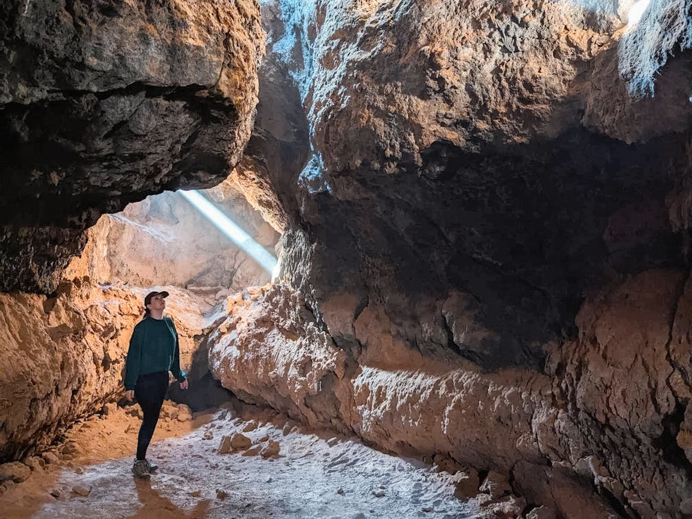 Eventually you’ll reach a circular parking area and then you’ll see a small sign saying “Lava Tube” that marks the start of the trail. It’s a short walk, only around 300 yards or so, but the views are incredible: wide-open desert vistas as far as the eye can see and no civilization in sight. A powerful reminder that you are definitely in the middle of nowhere.