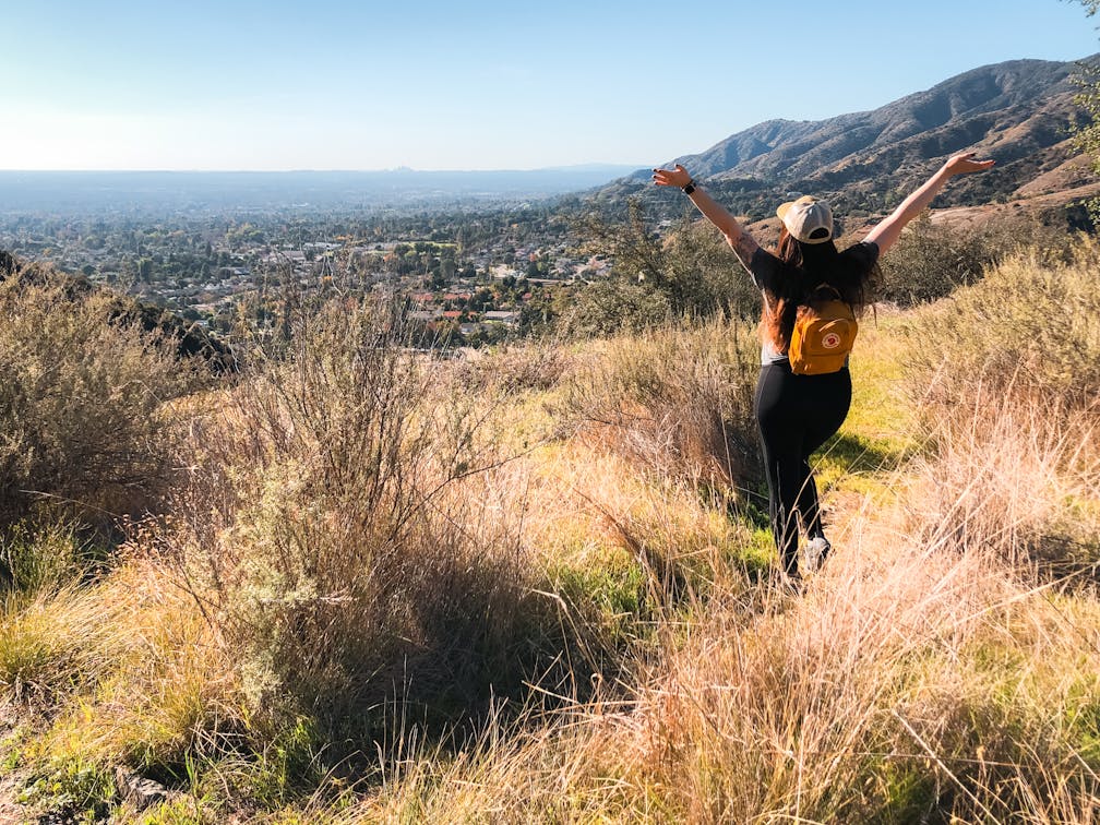 Right off the bat the trail climbs steeply as it makes its way out of the canyon and skirts the edges of the mountainside. It never summits any of the small peaks, but it sure feels like it should! The surrounding views are lovely all around—from the canyon to the snowcapped San Gabriel Mountains, or all the way out to downtown Los Angeles on clear days.