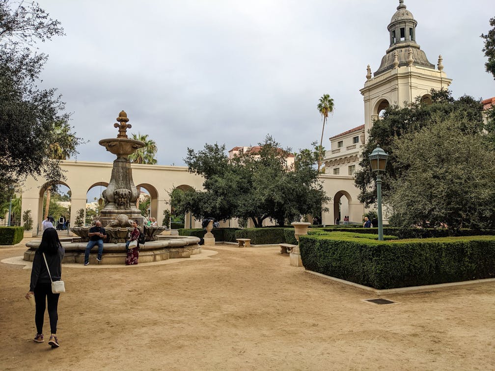 Return west on Colorado and take a right on Fair Oaks Avenue, heading north. (Or if you’re up for it, you can continue on Colorado for another three-quarters of a mile to get to the famous Colorado Street Bridge.) Heading north on Fair Oaks, turn right onto Holly Street and find the most otherworldly shop in town, Gold Bug. Continue on to Memorial Park, home to the ruins of Pasadena’s first public library. It’s across the street from the Holly Street Livery Stable, which has the name “J. Cazaurang” inscribed on it and many associated mysteries.