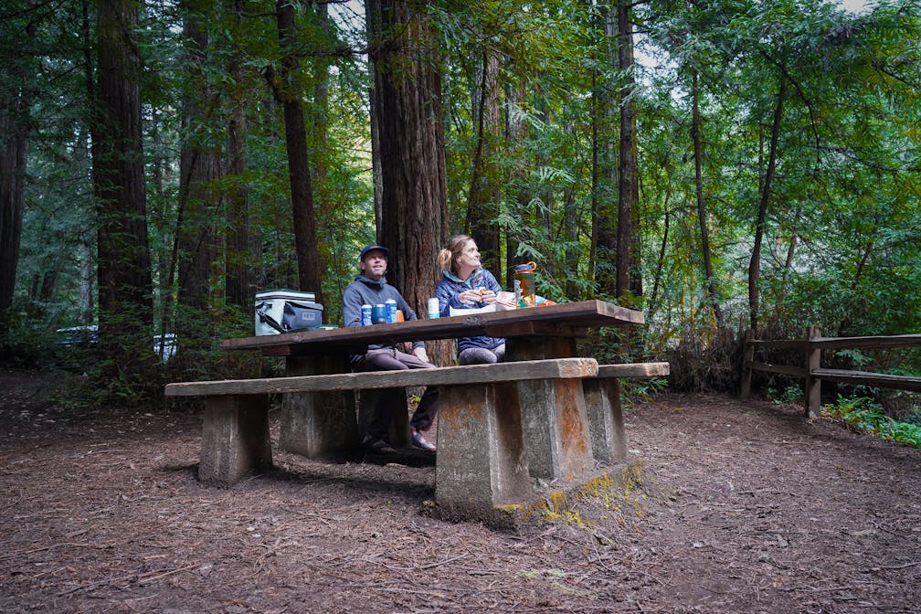 Pick your spot under the spectacle of hulking redwoods and enjoy a picnic or barbecue surrounded by an oasis of NorCal nature. Combine a picnic and a pedal by biking the easygoing Cross Marin Trail. Once a railroad used by the Northwestern Pacific, this converted path parallels free-flowing Lagunitas Creek, with redwood trees to admire and several streamside trails.