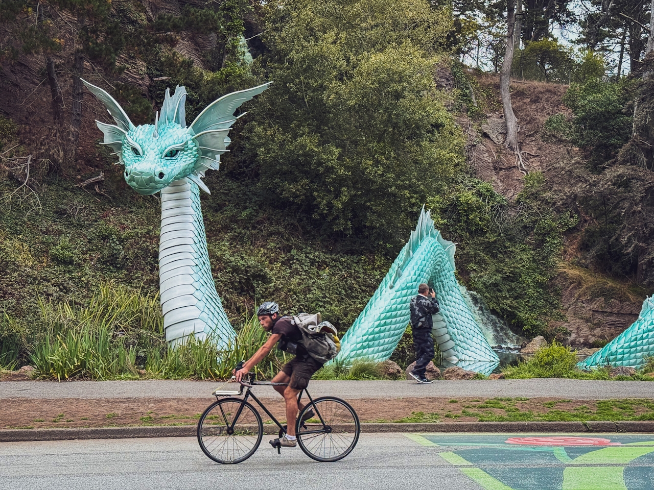 As San Francisco’s largest park, Golden Gate Park is the heartbeat of the city. Hearts swelled even more when JFK Drive became a permanent car-free street. That’s more open space for biking, walking, roller skating, and ADA accessibility. And it all goes better with beautiful outdoor art. A recent new addition is the impressive sea serpent art installation at Golden Gate Park's
