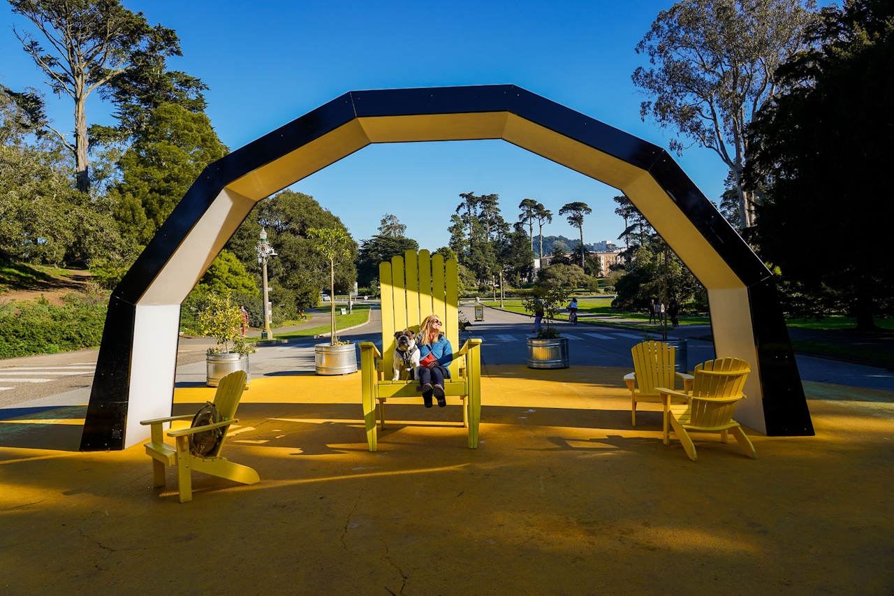 Dubbed the Golden Mile (it’s actually about 1.5 miles) and flanked by the botanical gardens, Japanese tea garden, grassy meadows, and other, more permanent, points of interest, JFK Drive also features rotating art installations of murals, sculptures, and abundant bright yellow Adirondack chairs for kicking back to relax.
