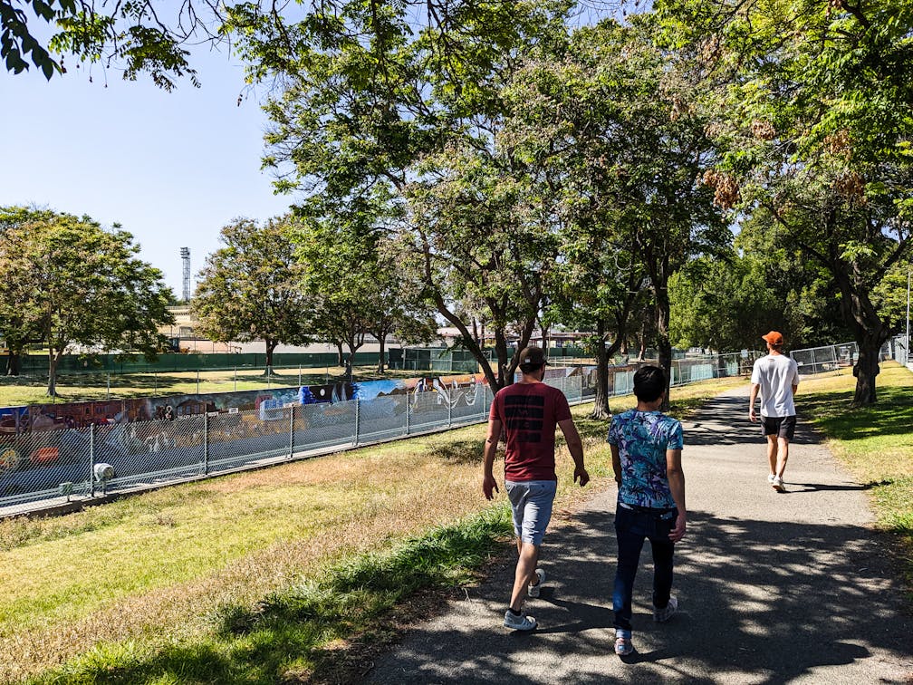 The viewing path, which meanders under a variety of trees, from palms to pines to sycamores, flanks the mural and Tujunga wash to the east. SPARC’s vision for the iconic LA landmark was one of interracial harmony: “a pictorial representation of the history of ethnic peoples of California from prehistoric times to the 1950s.” Completed initially over five summers (and of course, still continuing) in the flood control channel, the massive effort garnered over 400 youth and families working with artists, historians, scholars, and other community members. Today, Angelenos have the great honor to both gaze at and learn from the longest mural in the world.