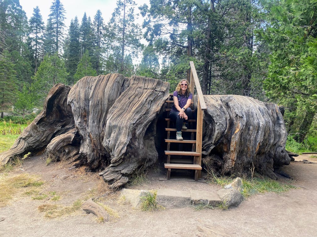 The Big Stump Trail in Sequoia & Kings Canyon Park winds through a grove of giant sequoias that was logged in the nineteenth century. What remains are enormous stumps that feel beautiful and otherworldly–like wooden sculptures shaped into mushroom tops or spaceships scattered across the forest floor.
